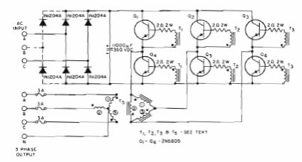This circuit was found in the RCA Power Transistor manual from the 70's. The circuit uses power transistors of the time.