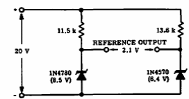 Found in Motorola documentation from 1967, this circuit shows how it is possible to obtain a differential reference voltage using two zener diodes.
