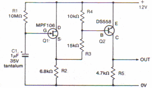 This 40-second timer uses common components. The output can be used to excite a power stage. With an increase in C1 you can get longer times.