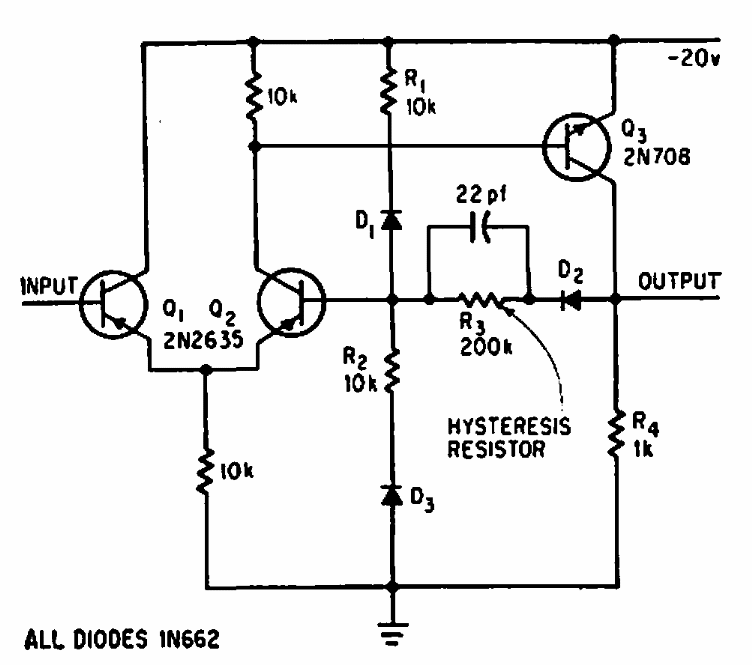 Found in a 1967 American electronics magazine, this circuit has an input impedance of 2000 ohms. The circuit can be built with modern equivalent transistors.