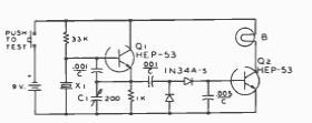In a modern version this circuit can use an LED in series with a resistor in place of the lamp. The circuit is from an American documentation from 1977.