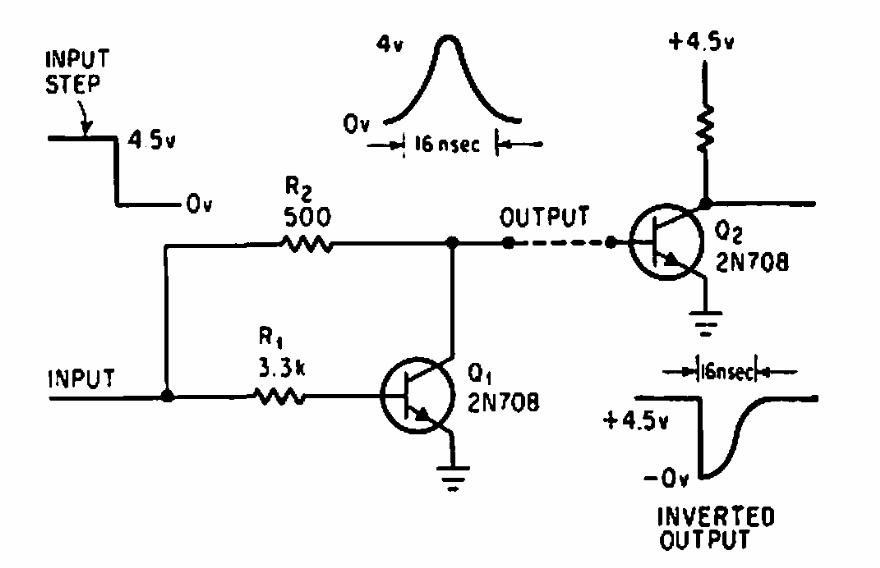 Found in a 1967 US magazine this circuit generates positive and negative voltage pulses from a negative transition of the input signal.