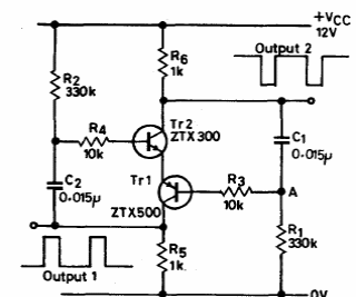 This circuit was taken from the 1974 Ferranti transistor manual. Note the shapes of the signals. Transistors are in general use at the time.