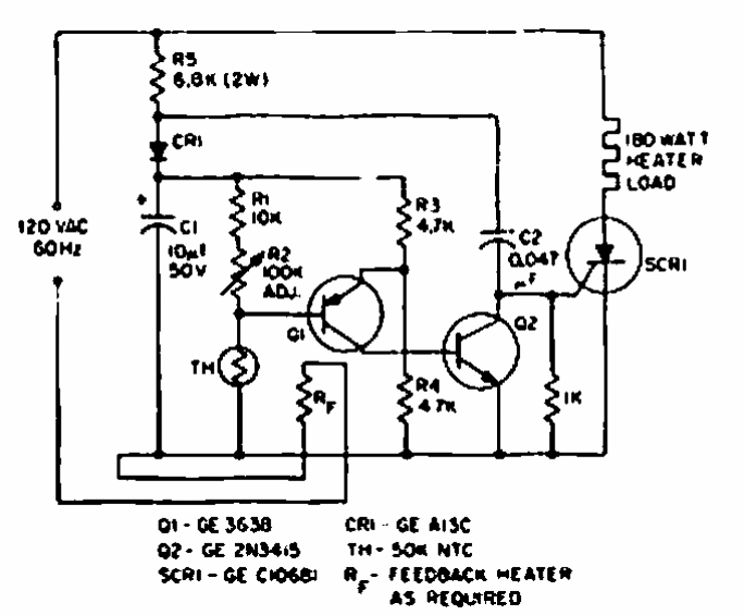 The purpose of this circuit found in a 1967 GE SCR manual is to control a heating element. The SCR must have current according to the controlled load.