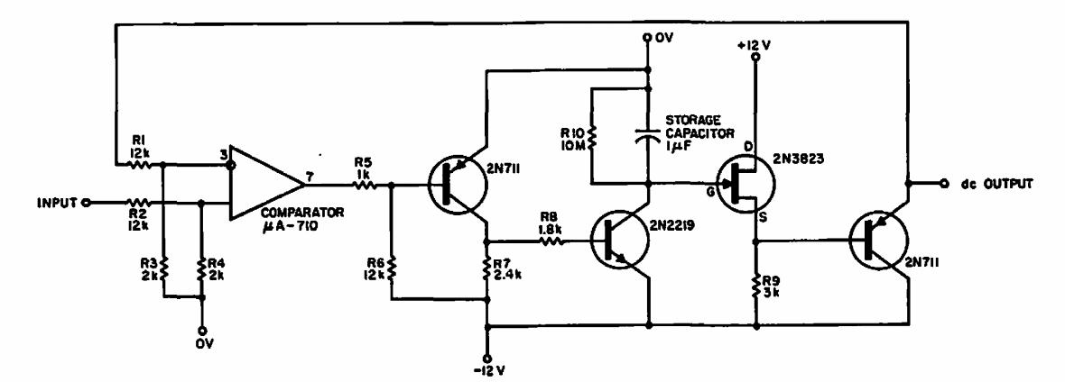 Found in a 1967 Electronic Design, this circuit can detect pulses as narrow as 0.2 us. Active components can be replaced with modern equivalents.