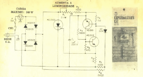 This is the circuit of an RCA Dimmer sold in 1967. With it it is possible to control a load up to 240 W. Modern SCRs and transistors allow to improve this circuit.