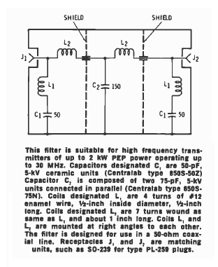 This circuit allows frequencies between 1.8 and 30 MHz to pass. Data for the coils is provided next to the diagram. The circuit is from a 1977 documentation.