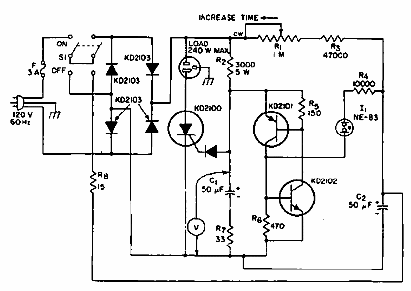 This circuit was found in a 1967 RCA documentation. The semiconductor components are from the time, and modern equivalents can be tried.