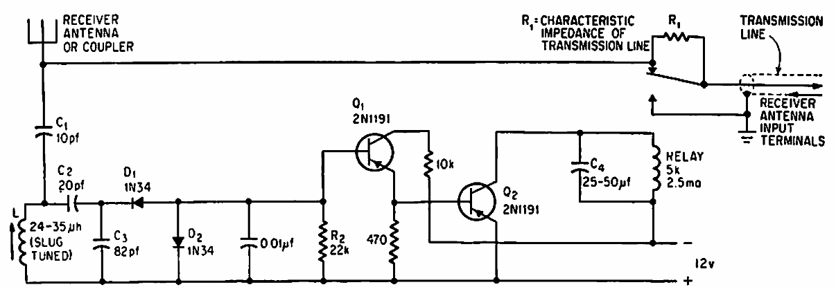 This circuit has the function of automating some type of equipment when a powerful transmitter is activated nearby. The circuit was found in a 1967 documentation.