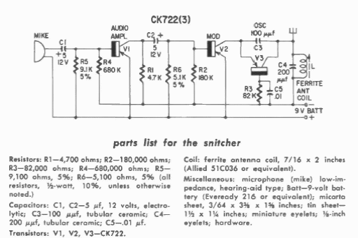 This is the name given to this small MW transmitter that can function as a wireless microphone. The circuit is from a 1960 book by Hugo Gernabck.