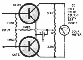 This circuit for analog instruments was found in a Raytheon documentation from the 1960s. Transistors are germanium types from the time.