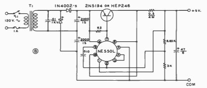 Found in a 1977 documentation, this power supply uses an integrated regulator circuit from the time. The transistor is according to the output current.
