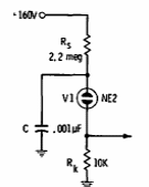 Found in an old documentation about neon lamps, this circuit has the frequency basically determined by the capacitor C. Note the high supply voltage.