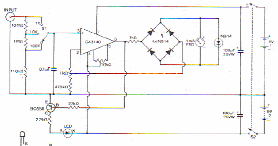 We found this circuit in an internet documentation. The circuit uses a 1 mA instrument, and the power supply consists of two 9 V batteries.