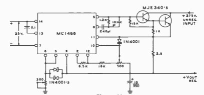 This high current regulator was found in documentation from 1977. Transistors are types of power at the time. The circuit is suggested by Motorola.