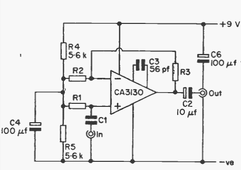 This JFET op amp audio preamp was found in old documentation. The power supply does not have to be symmetrical. Resistors R1, R2 and R3 from 10k to 1M determine the gain.