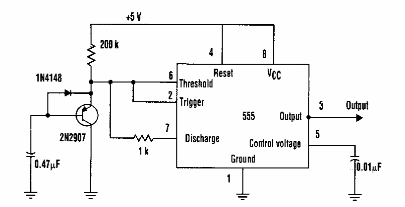 Found in documentation from ON Semiconductor, this circuit provides a rectangular output signal with...