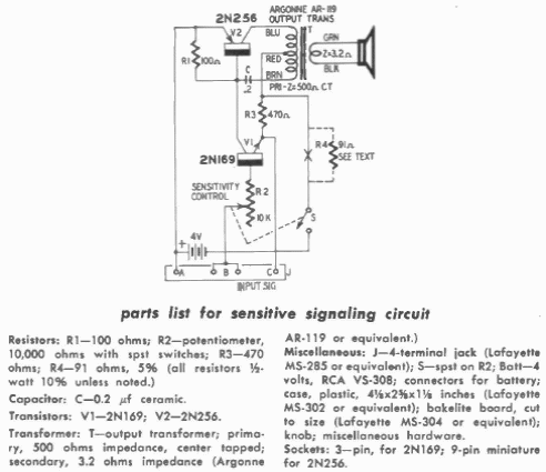 This circuit can be used in alarms to generate a warning signal. The circuit is from a 1960s publication by Gernsback. The transistor is germanium from the time.