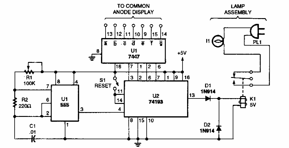 This circuit was found in a Popular Electronics from the 90s. The circuit uses TTL technology and must be powered by a voltage of 5V.
