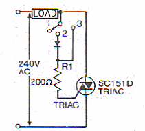 This 3-position switch with triac was found in country documentation with a 240 V network. Valid for other power grids.