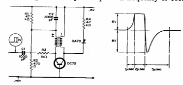 This pulse-synchronized oscillator was found in a Mullard manual from 1960. The transistors are made of germanium and the frequency is given by the coils and associated capacitor (C2).