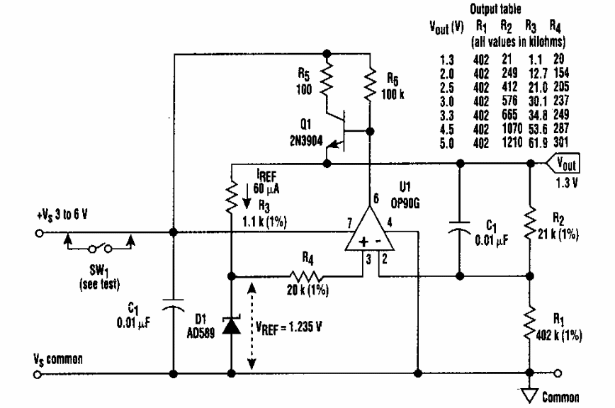 Found in an Electronic Design from the 90's, this circuit supplies voltages according to the indicated component values. The integrated circuit is from the time.