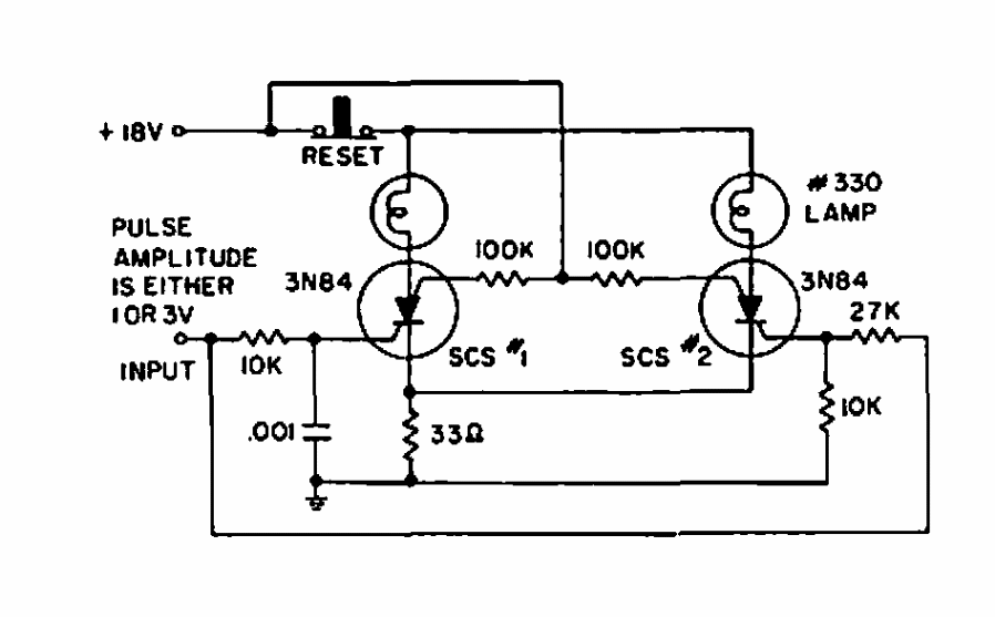 This circuit using programmable unijunction transistors was found in General Electric documentation from 1964. LEDs can be used instead of lamps.