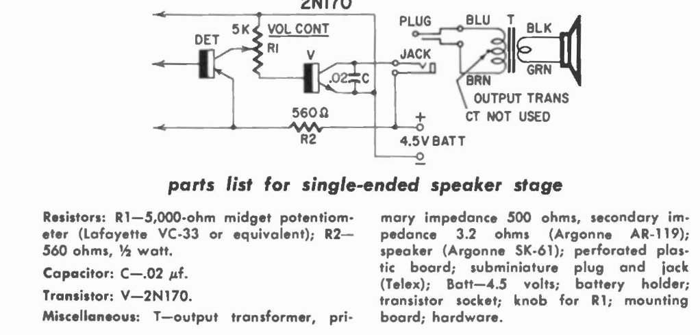 This circuit with germanium transistors was found in a publication by Gernsback from 1960. The circuit is low power, a few tens of milliwatts.