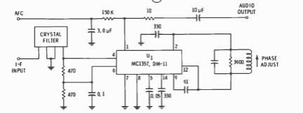 This circuit was found in a 1977 American manual. The integrated circuit is from the time. Component values depend on the frequency range.