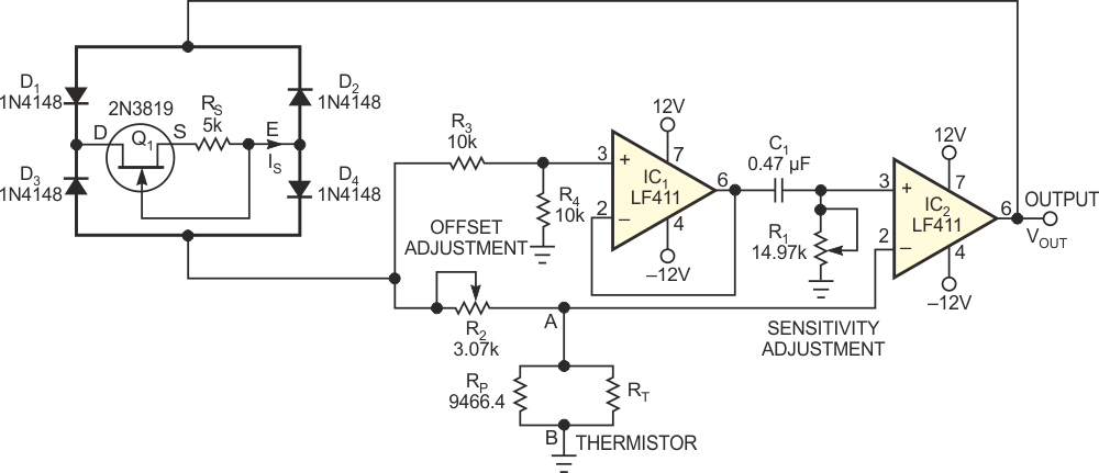 Based on Texas Instruments documentation, this circuit serves for sensor interfacing. The circuit is based on the LF411, but other operational ones can be used.