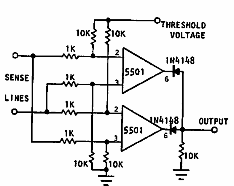 This circuit, with two operationals, was obtained from an old American publication. Operational amplifiers can be of modern equivalent types.