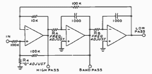 This circuit was found in a 1977 documentation for radio amateurs. Integrated circuits are common operational amplifiers.