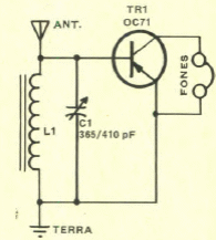 In this receiver, the emitter-base junction of the transistor works as a detector. The transistor is a general purpose and high impedance headphone. Power comes from the captured signal itself.
