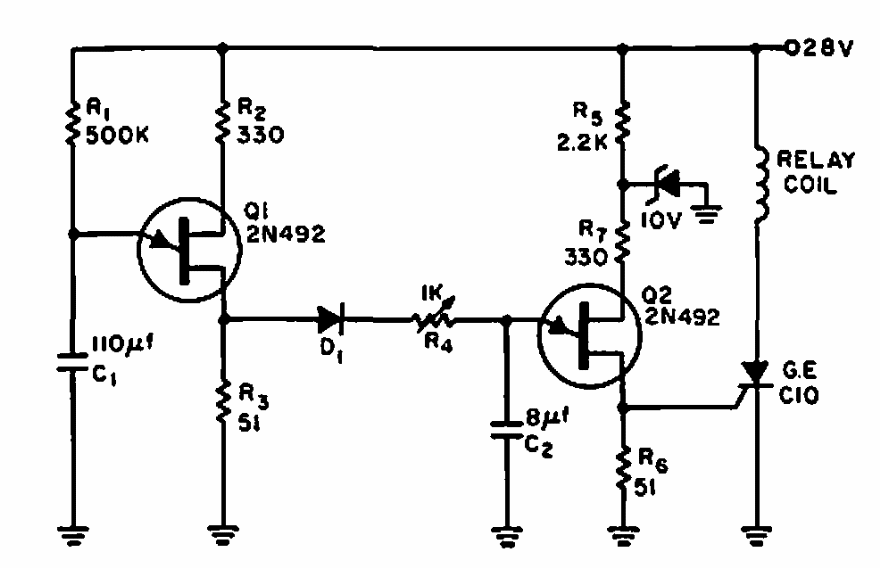 This timer with two unijunction transistors and one SCR was found in an American documentation from 1964. The unijunction transistors could be the 2N2646.