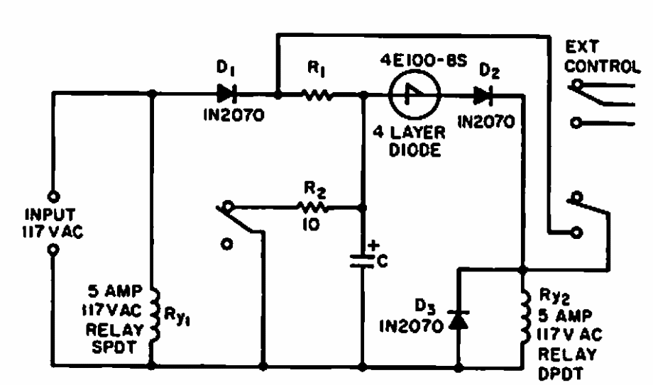 We found this circuit in an Electronic Design from 1965. The 4-layer diode is an unusual component these days and can be used in its place with a diac.