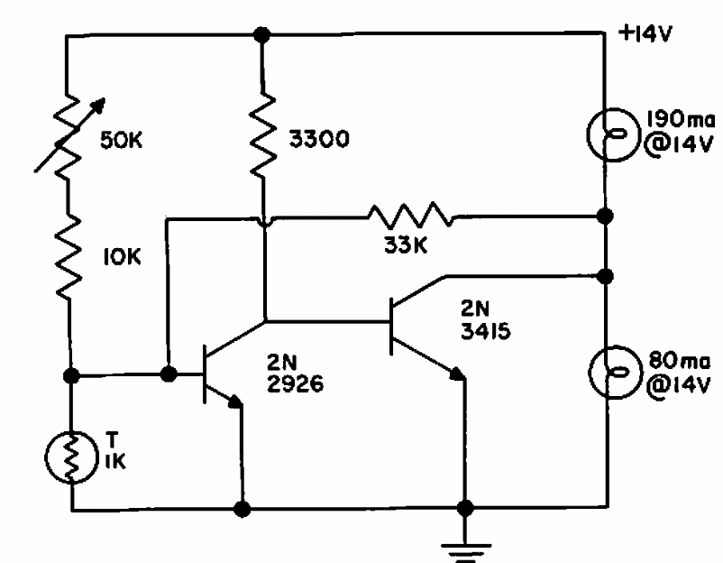 Found in a 1966 documentation, this circuit monitors the operation of an air conditioning system. Transistors are from the time.