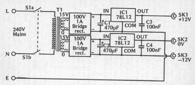 Found in an English documentation from 1989, this font uses current components. Rectifier bridges can be replaced by common diode bridges.