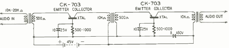 This 1950's circuit used one of the first commercial transistors and had two stages for audio signals. The circuit had good gain for the time, already showing the future possibilities of transistors.