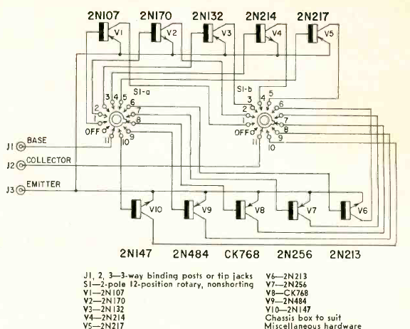 This circuit for the experimenter of the 60s allowed testing the most common transistors in the projects carried out. The circuit is from a Radio Electronics from February 1960.