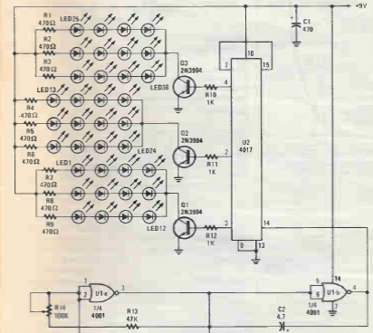 Found in a Popular Electronics from 1992, this circuit was created to give effects to an electronic doorbell. The circuit can be used for other purposes.