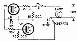 This circuit whose transistors depend on the lamp current was found in Radio Electronics magazine from February 1962. The frequency depends on the capacitor.