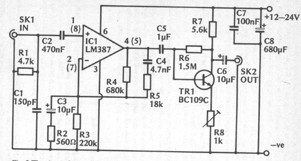 Found in an English documentation from 1989, this circuit is intended for equalization of cassette recorder heads in playback. The circuit does not need a symmetric power supply.