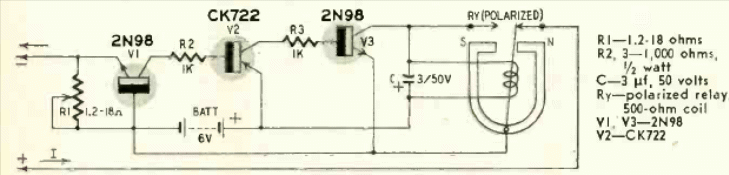 This current switch was found in a Radio Electronics from November 1957. It triggers the current determined by the electromechanical sensor, a polarized relay of the time.