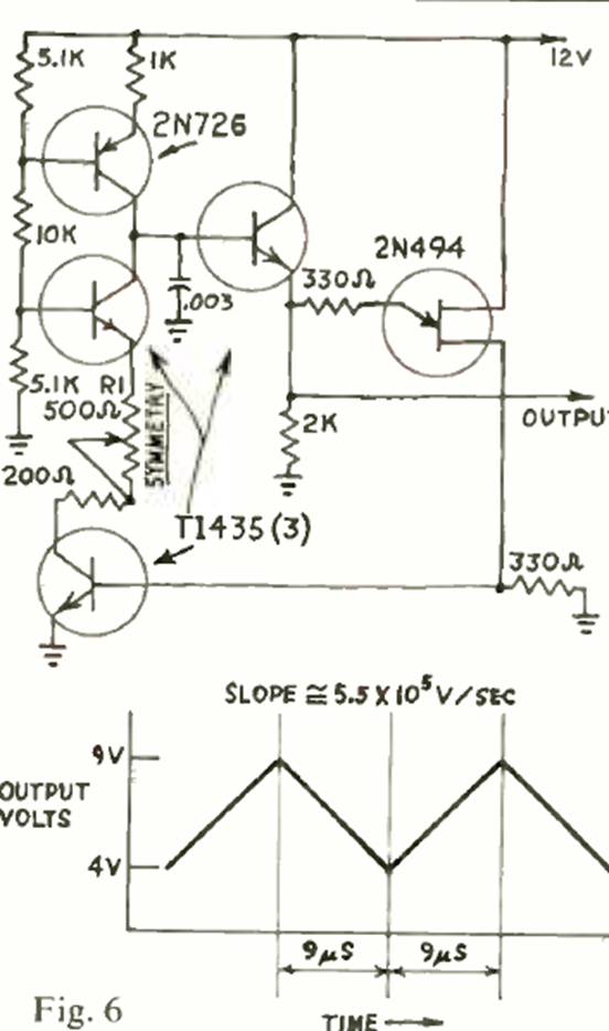 This circuit generates a triangular signal whose frequency is given by the basic components. The circuit is from a Radio Electronics from May 1967. The unijunction transistor is a type of the time.