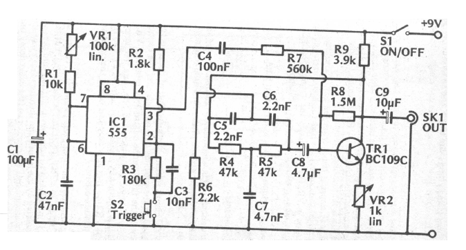This interesting circuit was found in an English documentation. It generates sound similar to applause. The circuit can be elaborated with BC548 transistor, and its signal must be applied to an external amplifier.