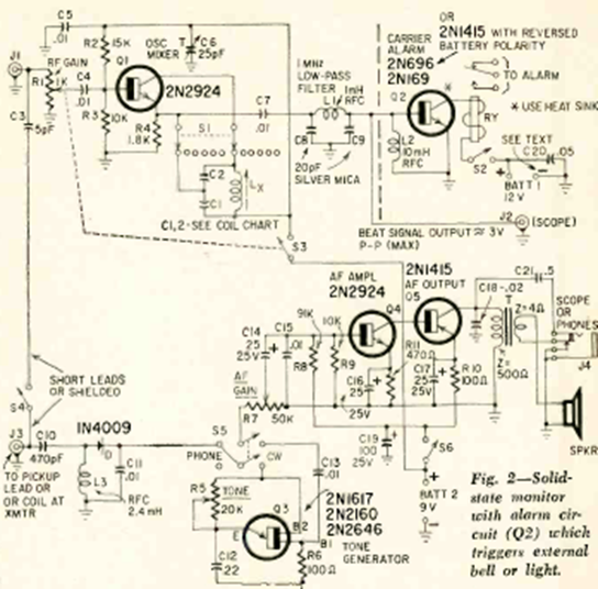 The purpose of this receiver is to monitor the signal from a nearby transmitter. It was published in an article in Radio Electronics magazine in December 1967. Transistors are types of the time.