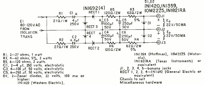 This simple low current circuit was found in a Radio Electronics magazine from August 1960. The circuit does not use transistors in regulation, but only zeners directly.