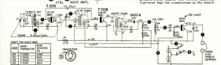 This small receiver for the medium wave range was found in Radio Electronics magazine from July 1958. The circuit is for listening to headphones and powered by batteries.