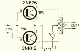 This output stage with the 2N626 and 2N1019 in counterphase was found in a Radio Electronics magazine from June 1961. The transistors are for 3 A.