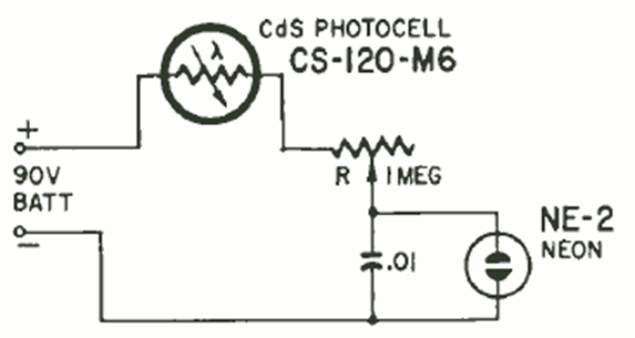 This circuit with LDR and neon lamp has its operating frequency given by the light. The circuit is from a Radio Electronics from July 1963. It can be used for teaching or experimental purposes. C1 can be changed according to the desired frequency.